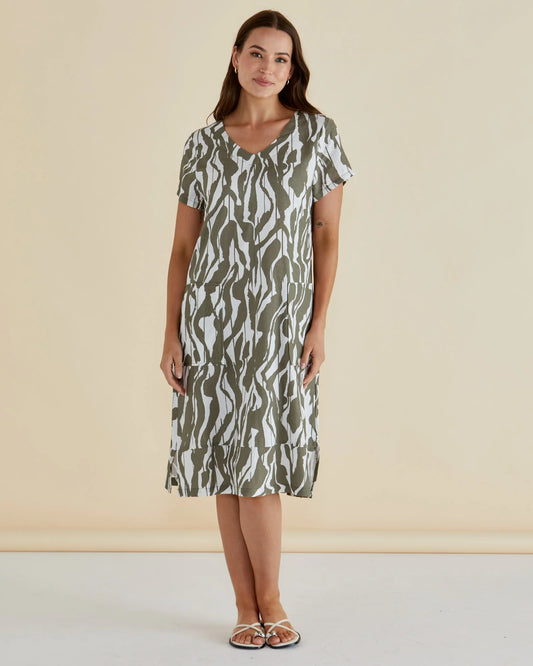 Betty Basics Elwood Dress | Olive Geometric Print