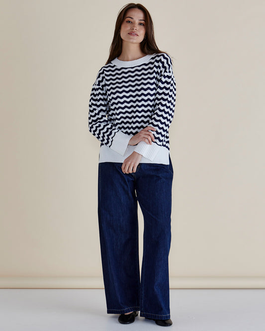 Betty Basics Ember Knit Top | Navy Wave Stripe