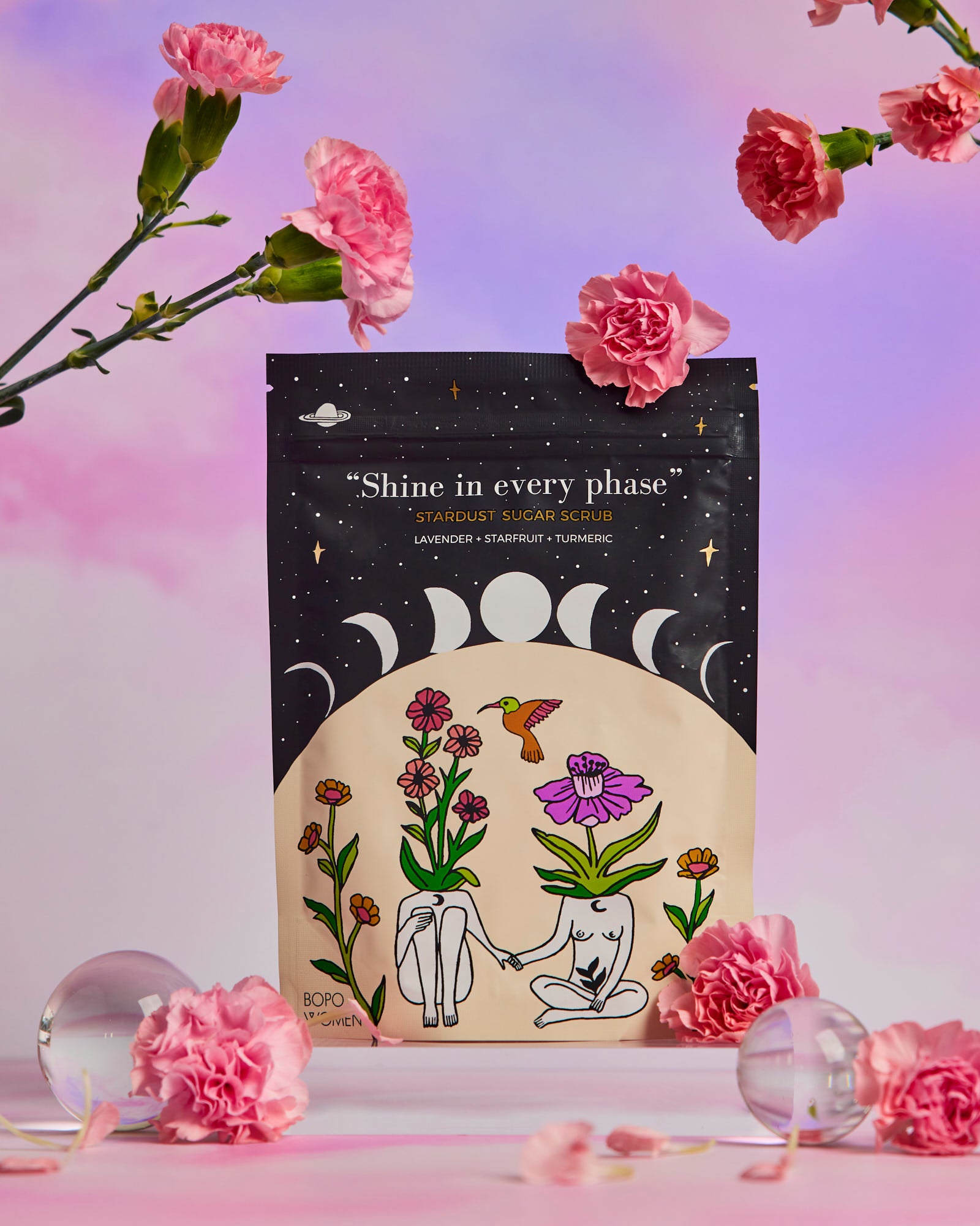 The all-natural Stardust Sugar Scrub is crafted from calming essential oils and skin healing superfoods.