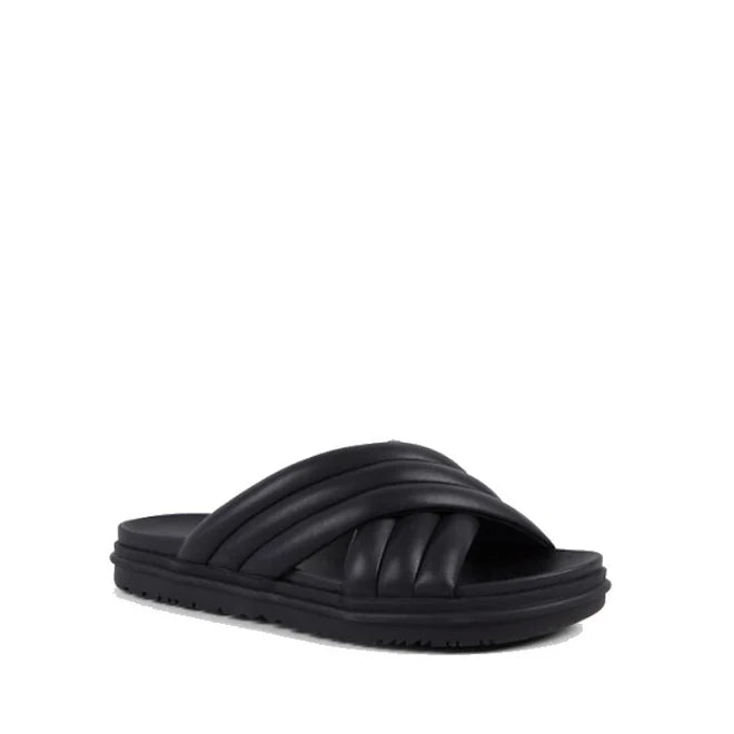 A sandal with a playful, sophisticated twist. Soft leather forms a crossover design, with each strap layered to create subtle texture and visual interest. The backing-free, slide-on style keeps it effortless, while the soft footbed and durable sole ensure comfort from morning to evening. Fun yet understated, it’s a versatile style you’ll reach for all season long.