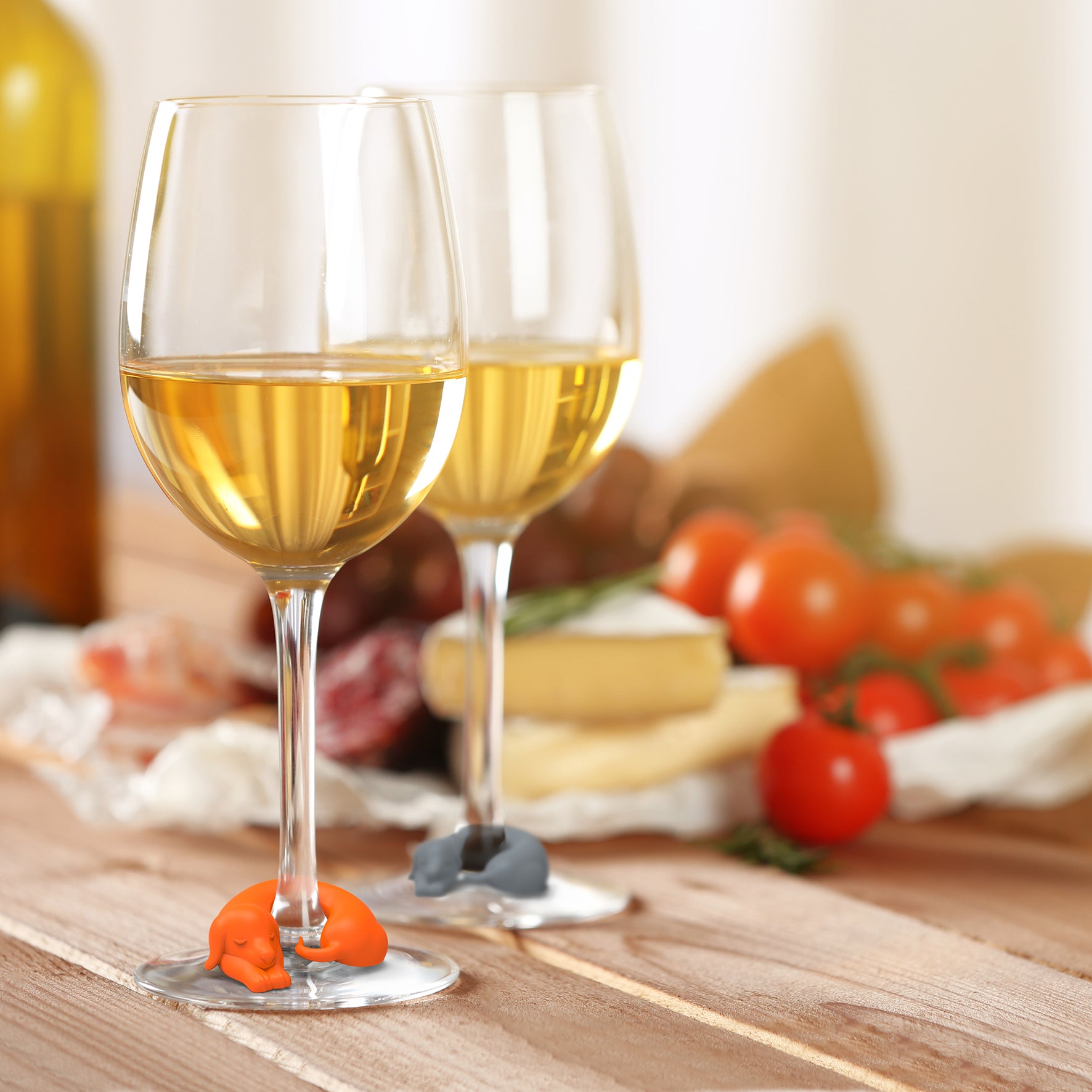 Winer Dogs are made of soft, food safe, 100% BPA-free silicone. The flexible silicone design makes it a perfect fit for most stemmed drinkware including wine glasses and champagne flutes.