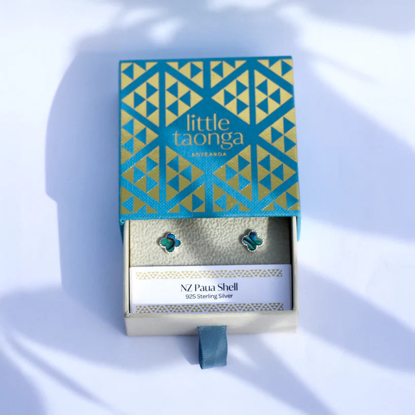 Little Taonga Paua-Clover Earrings: A symbol of luck and natural beauty.